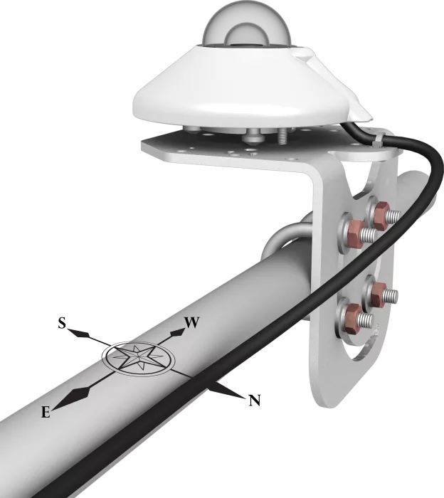El CMP21 incluye un protector solar blanco a presión que reduce la temperatura del sensor. Un nivel de burbuja y tornillos niveladores de ajuste permiten nivelar el sensor sin utilizar una base niveladora.