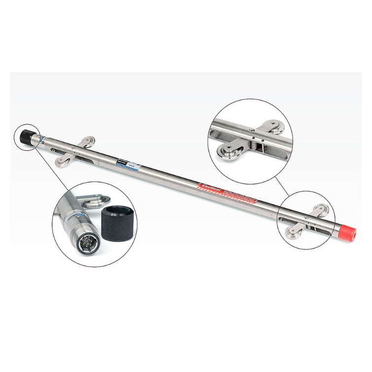 El Sistema de Inclinómetro Digital Modelo GK-604D se entrega como un conjunto completo que incluye la Sonda Inclinométrica Digital Modelo 6105, un cable montado en carrete y una computadora de campo FPC-3. La sonda 6105 incorpora la electrónica necesaria para convertir la señal analógica de voltaje en una señal digital, la cual es transmitida a través del cable de control hacia el carrete, donde se encuentra la interfaz encargada de la comunicación. Esta interfaz envía los datos al dispositivo de campo mediante tecnología inalámbrica Bluetooth®, lo que permite una operación ágil y sin cables adicionales. Además, la sonda está equipada con una brújula digital que corrige automáticamente cualquier torsión o espiral en los tubos inclinométricos, garantizando lecturas precisas. Los datos del levantamiento de espiral, junto con las mediciones inclinómetricas, se presentan y almacenan directamente en la misma unidad FPC-3 utilizada para la adquisición de registros, ofreciendo así un sistema integrado, robusto y confiable para el monitoreo de deformaciones y desplazamientos.