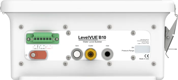 LevelVue™B10 es una solución rentable, precisa y confiable para mediciones del nivel de agua basada en un sistema transductor de presión no sumergible. Este tipo de sensor es un burbujeador. Los burbujeadores miden con precisión la presión necesaria para crear un flujo de aire continuo en una aerolínea sumergida en agua. El LevelVue B10 está diseñado para facilitar su uso y al mismo tiempo proporcionar rendimiento y precisión a largo plazo. Con un teclado y una pantalla integrados, puede completar sus tareas de configuración y visita al sitio utilizando LevelVue B10. LevelVue B10 interactúa con registradores de datos u otros controladores que utilizan SDI-12 o Modbus.