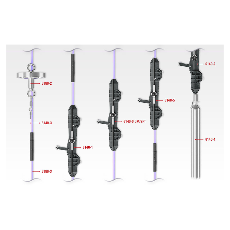 El Inclinómetro Vertical en Sitio Modelo 6140 (IPI String) está compuesto por una cadena de sensores de inclinación biaxiales basados en tecnología MEMS, ensamblados en resistentes carcasas de polímero de ingeniería. Cada módulo incorpora un sistema de ruedas, con una rueda de resorte y dos ruedas fijas, que permiten un acoplamiento seguro en las ranuras del tubo inclinométrico convencional, garantizando la correcta orientación del eje de referencia a lo largo de toda la profundidad. La cadena completa se mantiene en tensión mediante un contrapeso fijado al sensor inferior, mientras que su suspensión se asegura desde la parte superior del tubo a través de un cable y un soporte diseñado para este fin. Este sistema ofrece una solución robusta y confiable para el monitoreo continuo de desplazamientos y deformaciones en estructuras y terrenos.